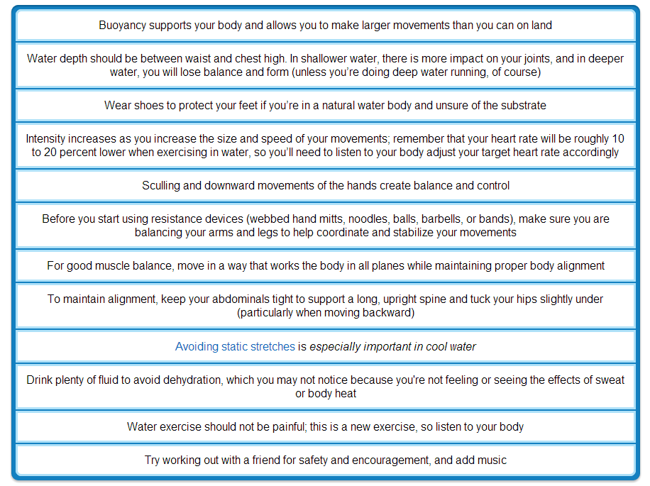 Keep the following information in mind, as the dynamics are a little different than when you’re exercising on land.